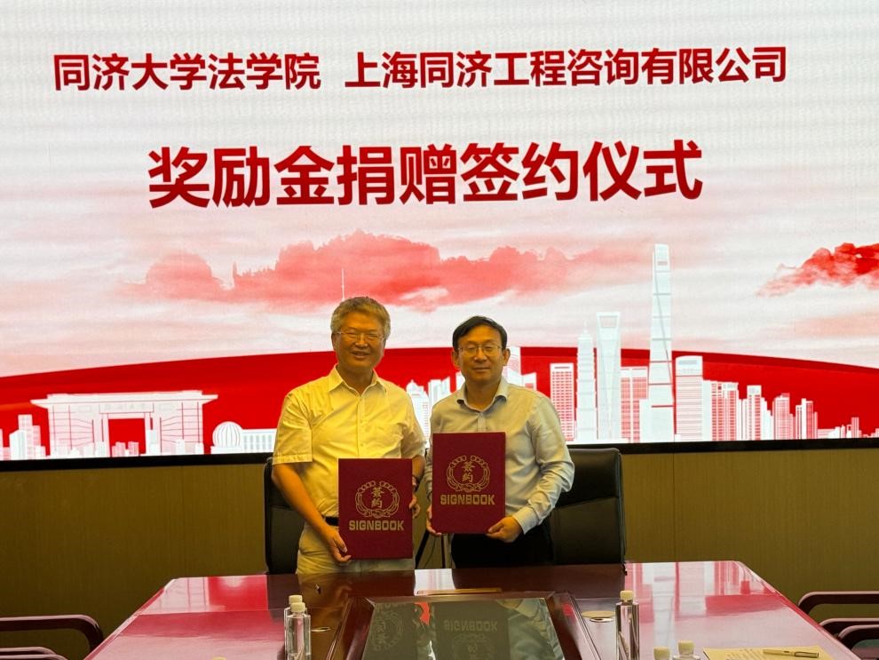 9月26日下午,同济大学法学院与同济咨询于长三角生态绿色一体化发展示范区成功举办“法治筑基·匠心同行”奖励金捐赠签约仪式暨“一会一品”产教融合共建活动。此次活动是双方践行产教融合,打造特色工会活动品牌的生动实践。同济大学法学院院长蒋惠岭、党委书记段存广,同济咨询总经理杨卫东等双方领导及师生、员工代表共同参与了此次活动,同济控股党委副书记、纪委书记、工会主席陆美红,工会副主席高培兰出席活动。