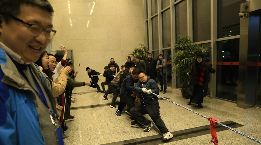 会后,大家组织开展了友好激烈的趣味拔河赛,四队依次角逐,拼尽全力奋力争先,欢呼加油声此起彼伏,热闹非凡!